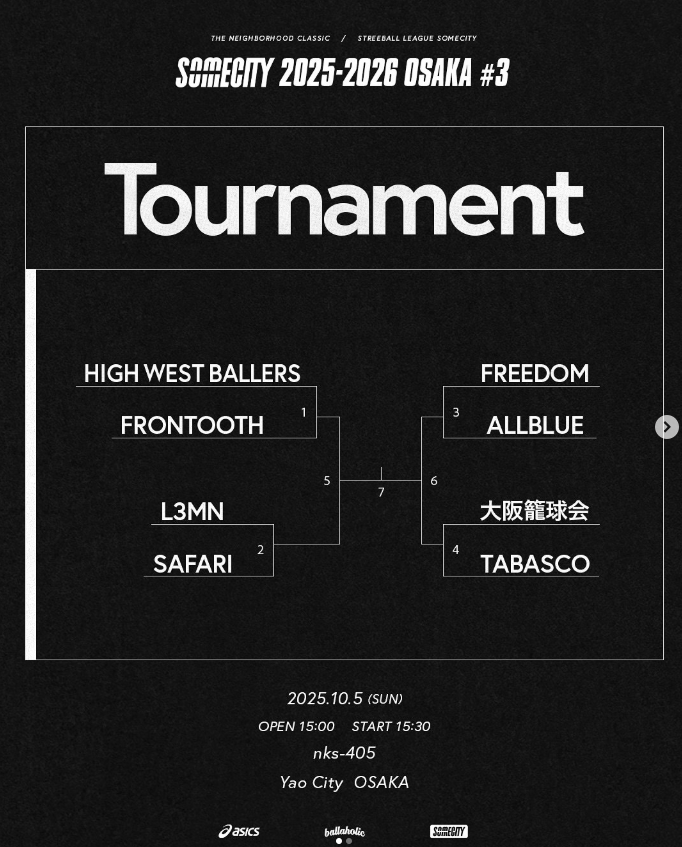 SOMECITYが運営する一般参加型ストリートボールイベント。主に3on3。SOMECITY参戦への門戸が開かれる大会。
