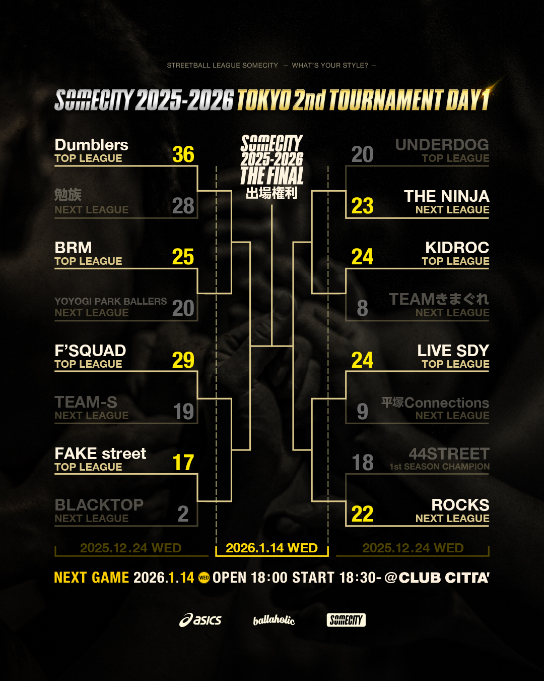 SOMECITY 2025-2026 TOKYO 2ndシーズンは、これまでにないトーナメント方式。このトーナメントを勝ち抜けばTHE FINALへの出場権を獲得できる。